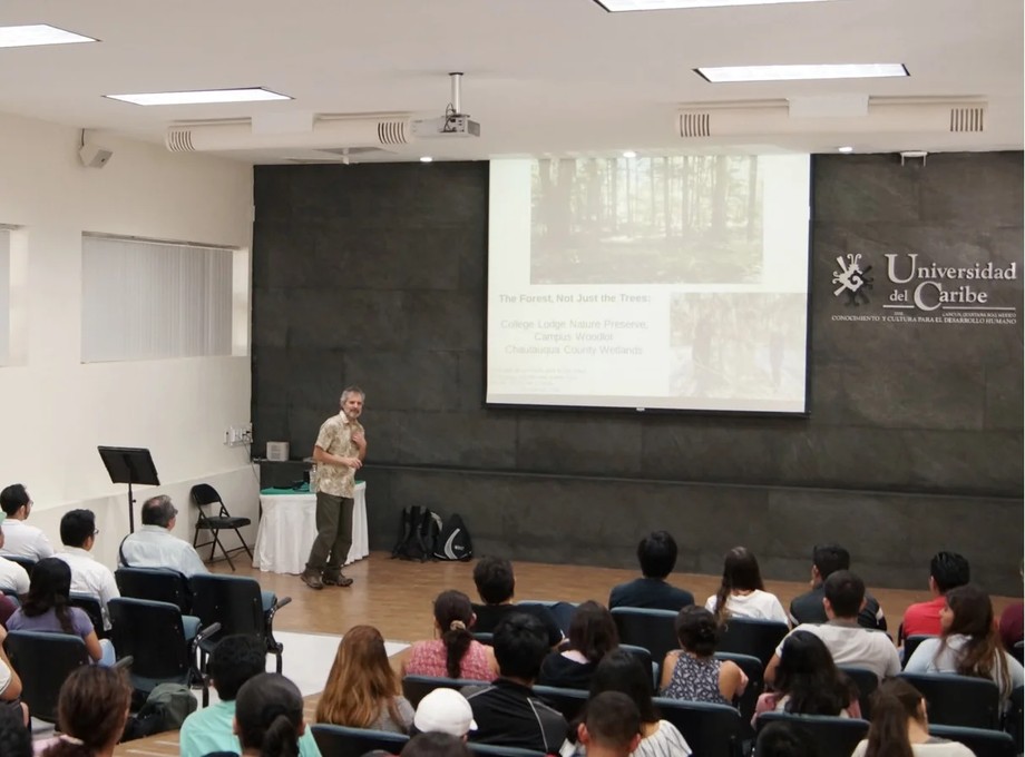 CANCÚN, Quintana Roo, 15 de febrero de 2018.-En el marco de actividades COIL, el Dr. Jonathan H. Titus, docente visitante de la State University of New York (Fredonia) dictó hoy la conferencia "The Forest, Not Just the Trees", ante estudiantes de Ingeniería de nuestra institución, en su mayoría de Ingeniería Ambiental.
