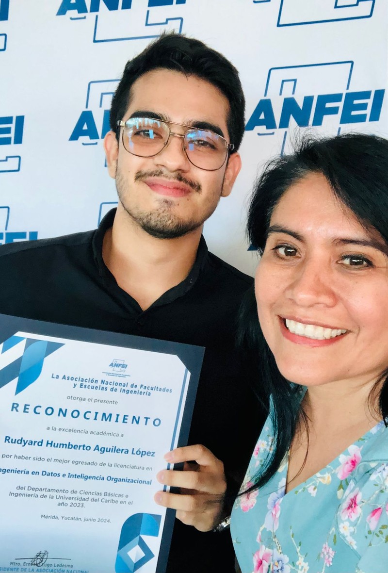 Cancún, Q.Roo, México.- El egresado de la Universidad del Caribe, Rudayard Aguilera López, fue galardonado con el “Reconocimiento a los Mejores Egresados de Ingeniería del País”, que otorga la Asociación Nacional de Facultades y Escuelas de Ingeniería (ANFEI).