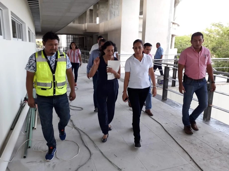 Acompañada de la Rectora de la Unicaribe, Dra. Ana Pricila Sosa Ferreira; el Secretario Académico, Dr. Pedro Moncada Jiménez, y el Subsecretario de Educación Media Superior y Superior, Rafael Romero Mayo, la titular de la SEQ, recorrió la obra del Edificio G7, en el cual se han invertido 67 millones de pesos de un total de 120 millones que es el presupuesto de la obra terminada.