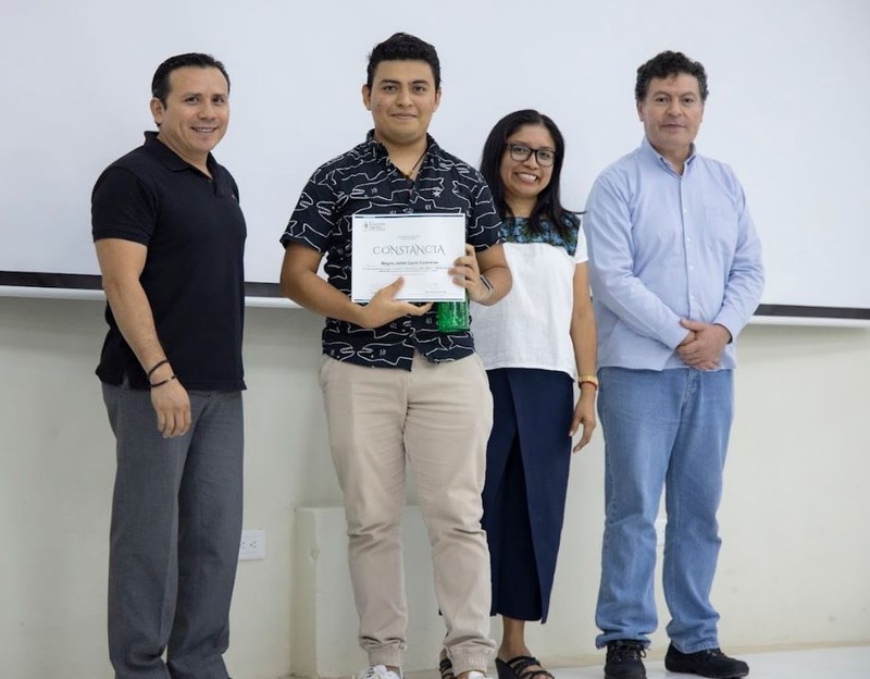 Previo a la inauguración de la exposición, se entregaron constancias a los estudiantes ganadores del 2do. Lugar en el Maratón de las Aves Xoc Ch’ich 2022: Natalia Núñez Ruiz y Carlos Eduardo Gómez Córdova, de Turismo Alternativo; Abraham de los Santos Cruz y Magno Jahfet Canul Contreras, de Ingeniería en Datos.